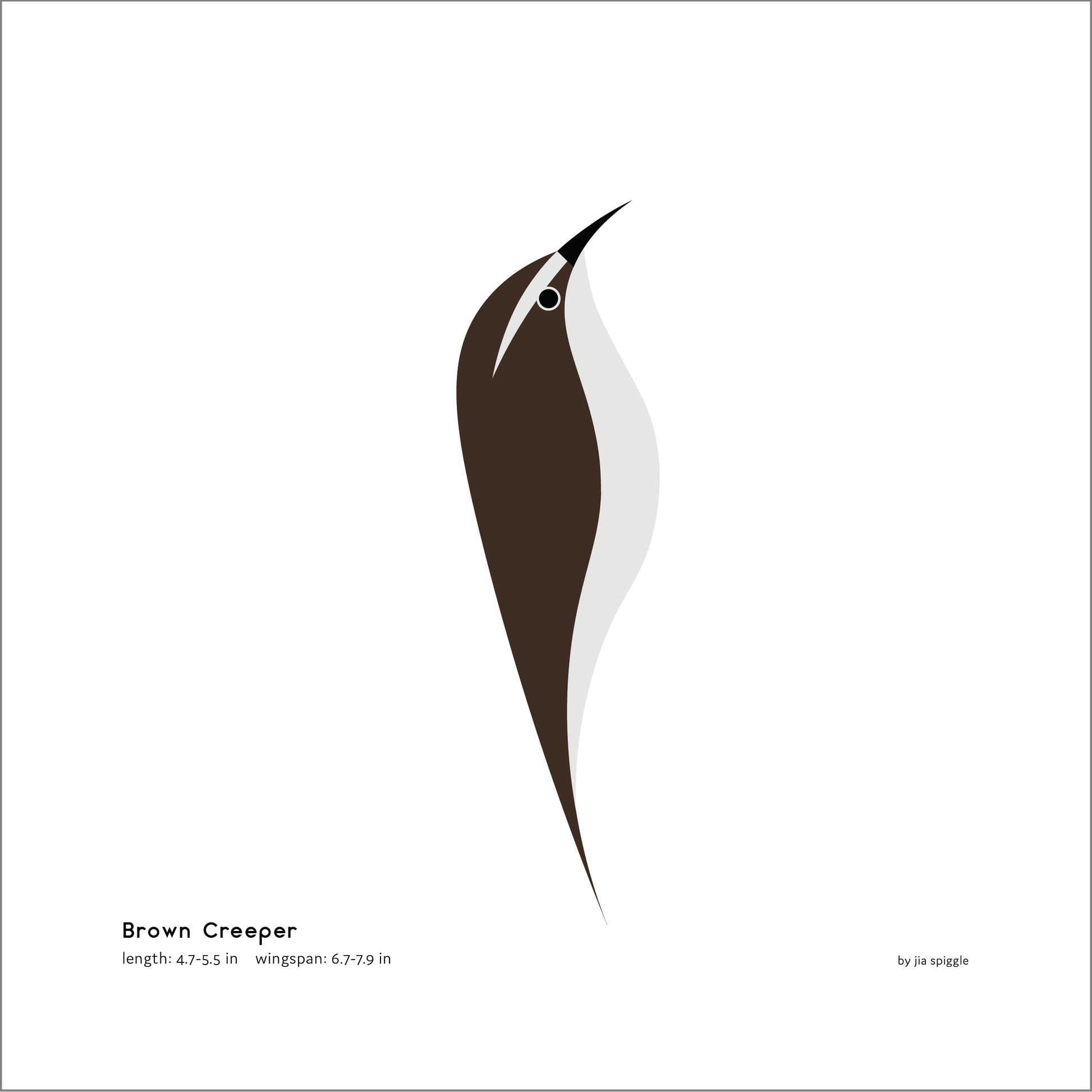 This 8×8" illustrated giclée print features the Brown Creeper, complete with its common name, length, and wingspan—making it both a field guide and art print.